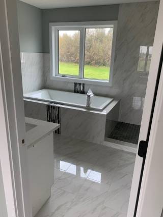 This 2525 square foot custom built home by 945 Developments is a two storey home with 3 bedrooms, 4 bathrooms, and a triple attached garage. Featuring hardwood floors with a vinyl siding exterior.